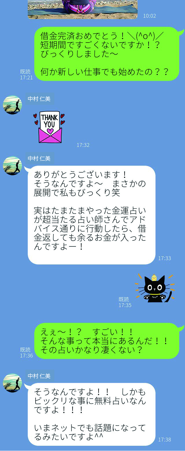 この占いのおかげで、我が家は収入ゼロ、200万もの借金を抱えてた地獄から抜け出し一般の人以上の収入と、自由な時間を手に入れることができたんです!